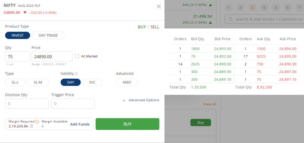 Shoonya’s web app stands out with one of the cleanest interfaces and impressively low latency on its bid-ask order book. This makes a big difference for traders who rely on quick entries and exits during high-volatility moves.